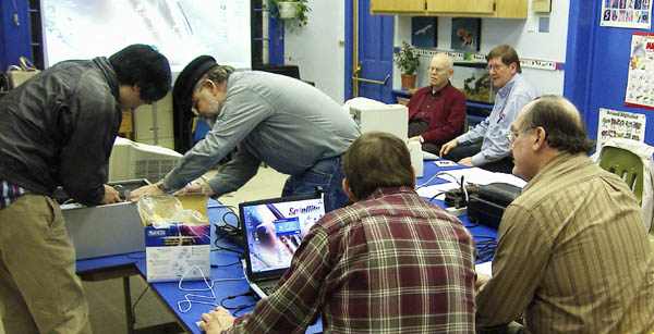 | On January 26th, a laser target designator, operated by persons unnamed for reasons of political expendiency, fell upon the video projector. Coincident with this, the demo computer squawked and died. On February 2nd, a new power supply was installed. The coroner's report for the old supply reads "early infant mortality." |